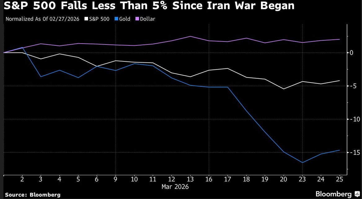 Der US-Leitindex S&P 500 hat seit Beginn des Konflikts vor knapp einem Monat weniger als fünf Prozent verloren, während klassische Absicherungsstrategien teils versagt haben. Gold ist um fast 15 Prozent gefallen, und auch US-Staatsanleihen — normalerweise ein Stabilitätsanker im Portfolio — gaben nach, da steigende Ölpreise Inflationssorgen auslösten.