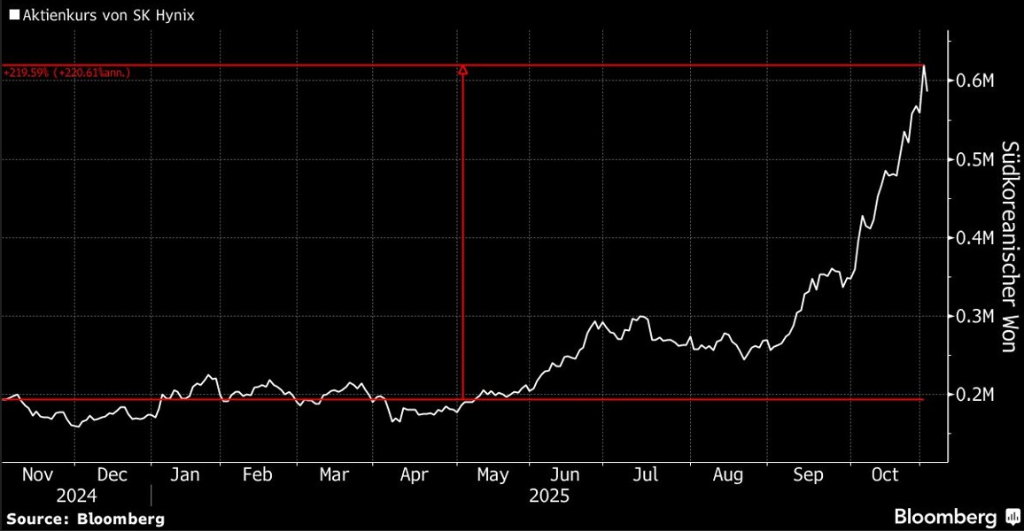 Die Aktien von SK Hynix hatten am Montag um fast elf Prozent zugelegt und damit ihren Anstieg im laufenden Quartal auf rund 70 Prozent ausgeweitet. Das entspricht mehr als dem Dreifachen des Zuwachses des Kospi-Index.