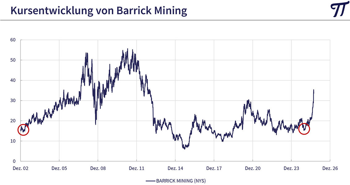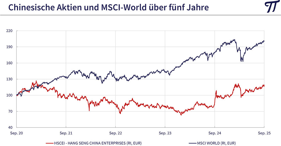 Goldminen haben den Anstieg des Goldpreises lange nicht mitgemacht. "Barrick Mining, einen der weltweit führenden Goldproduzenten, konnte man vor einem Jahr mit 15 US-Dollar noch zum selben Kurs kaufen wie 2003, obwohl sich der Preis des gelben Metalls seither verzehnfacht hat", gibt Huber zu bedenken. "Chinesische Aktien galten bis Anfang letzten Jahres als nicht investierbar, weil man befürchtete, dass China in einem Handelskrieg mit den USA den Kürzeren ziehen wird und der Handel mit Chinaaktien verboten würde. Inzwischen zeigt sich, dass das Reich der Mitte im Ringen um Dominanz den USA durchaus Paroli bieten kann und der technologische Fortschritt in vielen Bereichen unglaublich schnell vonstattengeht. Beide beschriebenen Bereiche haben langfristig weiter ein beträchtliches Potential."
