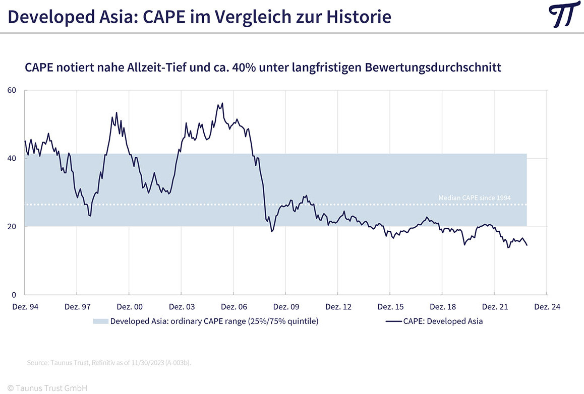 Wesentlich günstiger sieht die Lage in Asien aus. "Niedrige Produktionskosten, steigender Wohlstand und zahlreiche neue Freihandelsabkommen stärken den innerasiatischen Handel. Japanische Aktien gehören schon lange zu unseren Favoriten. Insgesamt liegt das Shiller-KGV in den entwickelten asiatischen Ländern (Japan, Australien, Singapur, Hongkong, Südkorea) 40 Prozent unter seinem langfristigen Bewertungsdurchschnitt. Das Shiller-KGV (CAPE) wird bekanntlich berechnet, indem man das aktuelle Kursniveau durch die inflationsbereinigten, durchschnittlichen Unternehmensgewinne der letzten zehn Jahre dividiert. Auch in den asiatischen Schwellenmärkten finden sich interessante Werte. Ausgewählte asiatische Aktien gehören daher weiter zu unseren Favoriten", hält Huber fest.