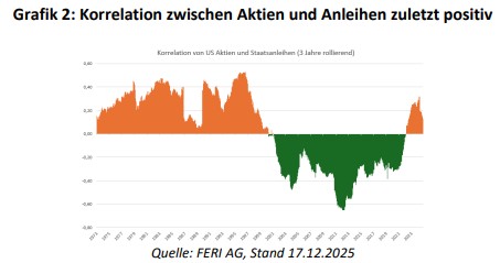 Auch aus Portfoliosicht gewinnen Volatilitätsstrategien an Relevanz. Die Phase, in der Portfolios stark von einer stabil negativen Korrelation zwischen Aktien und Anleihen profitiert haben, ist seit 2020/2021 weniger verlässlich geworden (siehe Grafik 2). Diversifikationseffekte können dadurch schwächer ausfallen. „Volatilitätsstrategien können in diesem Umfeld dazu beitragen, über einen längeren Zeitraum die Rendite zu diversifizieren“, erklärt Christoph Sporer (Bild links, Direktor Portfolio Management im Volatilitäts-Team von Feri. „Auch als Alternative zu High-Yield-Anleihen können Volatilitätsstrategien aktuell interessant sein, insbesondere wenn High-Yield-Spreads wenig Puffer für zusätzliche Risiken lassen.“