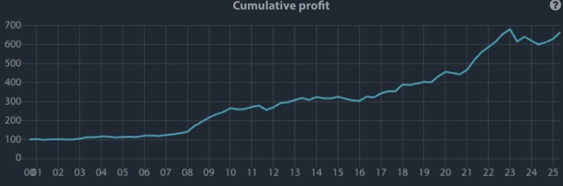 Kumulierte Gewinnkurve von Platin über 25 Jahre