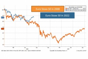In der historischen Rückschau wird damit klar, dass die aktuelle Wirtschaftsverwerfung in ihrem Ausmaß den Zusammenbruch der Tech-Werte (2003), die Eurokrise (2012) und selbst den Einbruch im Zuge der Corona-Lockdowns (2020) in seinem Umfang toppt, merkt Hübner an.