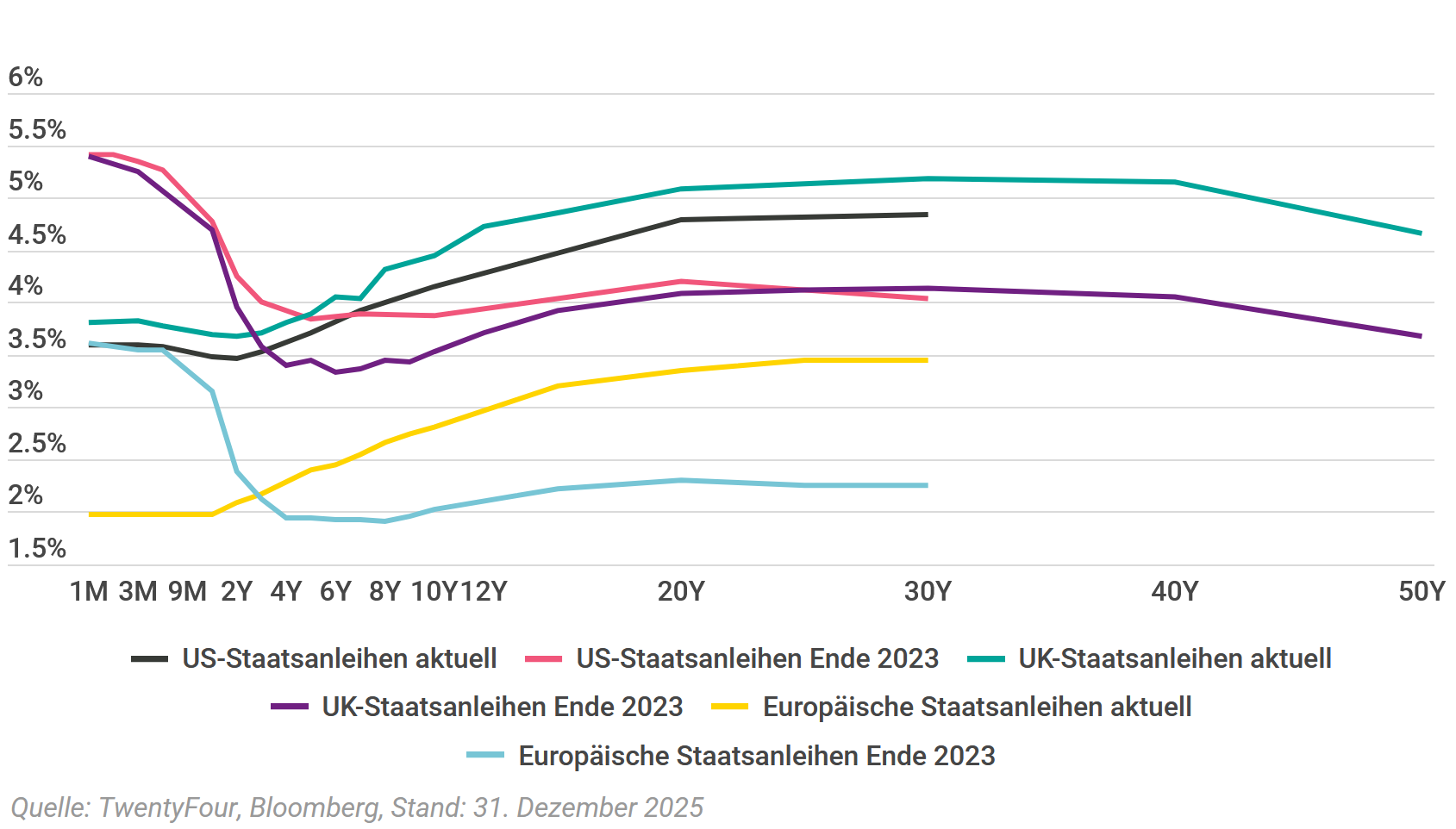 Deutlich steilere Zinskurven in den letzten 20 Monaten