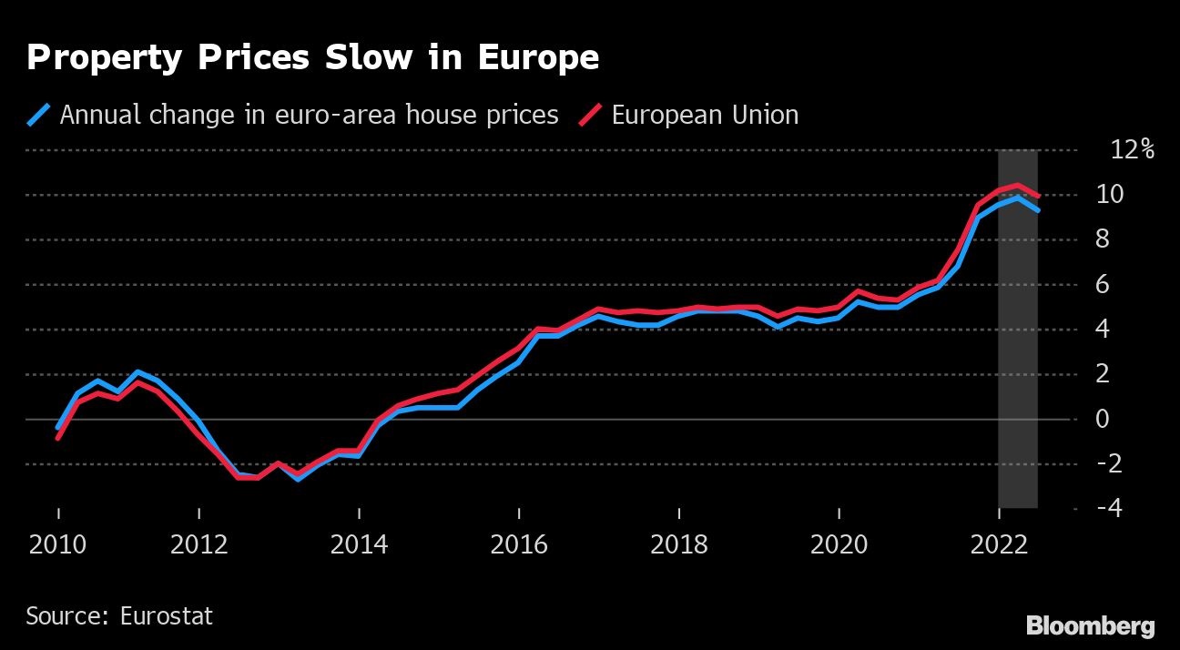 Die Teuerung von Wohnimmobilien hat im Euroraum erstmals seit zwei Jahren nachgelassen. Auf die Zuversicht drückt sowohl der Krieg in der Ukraine als auch die ausufernde Inflation, die die Europäische Zentralbank zur Abkehr von ihrer ultralockeren Geldpolitik bewogen hat. Darüber berichtet Bloomberg News.
