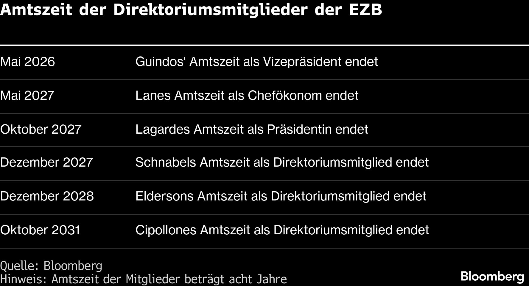 Zu weiteren als wahrscheinlich oder qualifiziert eingestuften Nachfolgern zählen Frankreichs Notenbankchef François Villeroy de Galhau und Italiens Fabio Panetta, deren Länder das Präsidentenamt jeweils bereits innehatten. Dann gibt es noch Olli Rehn aus Finnland, der bei der Wahl zum Vizepräsidenten den zweiten Platz belegte.