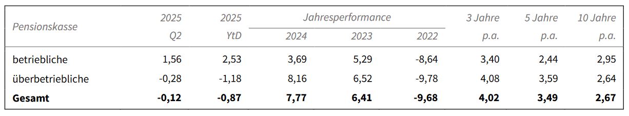 Bei den Betrieblichen Vorsorgekassen wuchs das verwaltete Vermögen laut FMA-Angaben weiter um 2,5 Prozent gegenüber Ende März, auf einen neuen Rekordstand von 22,0 Milliarden Euro Ende Juni 2025.