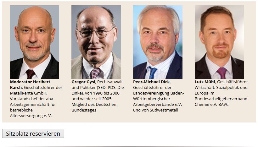 Bei dieser mit Spannung erwarteten Podiumsdiskussion unter Leitung von MetallRente- und aba-Chef Heribert Karch werden namhafte Experten Gehaltvolles zu Gehör bringen. Wen wir aller auf das Podium eingeladen haben, erfahren Sie unten.